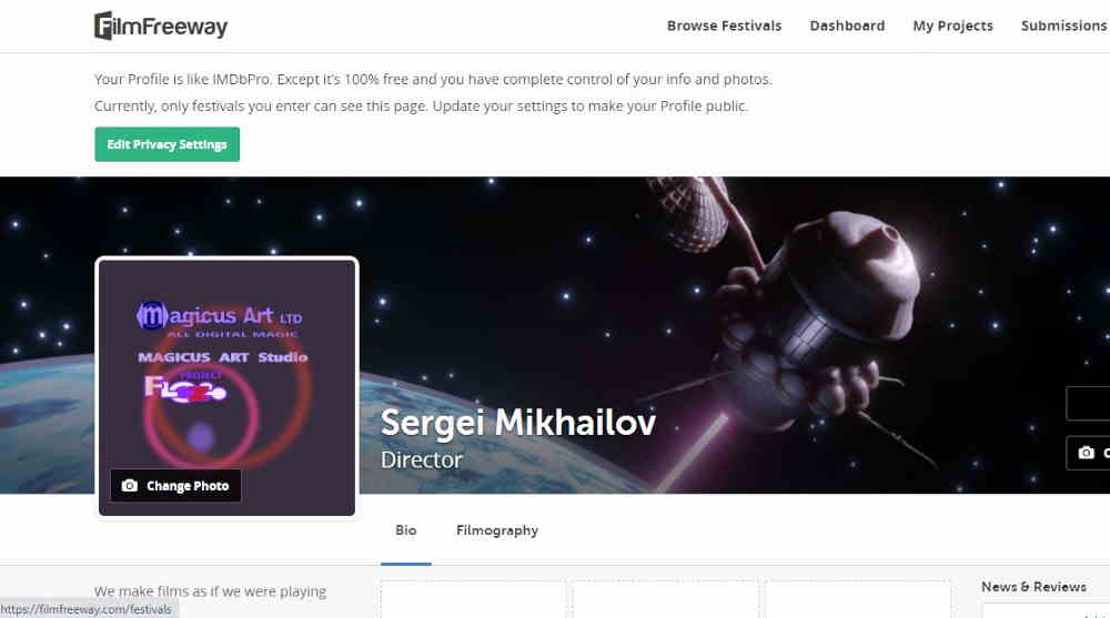 At the end of March, our film received an invitation to the festival, but soon left this forum. And, of course, we wish them good luck)